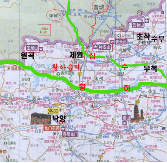 위에서의 ‘심수의 물길을 끌어 남으로 황하에 연결시켰다’는 기록으로 보아 엄청난 길이의 대운하로 알려진 수양제가 만든 영제거는 심수의 남쪽과 황하 사이에 있던 요택을 지나가기 위해 만든 작은 수로였던 것이다. 큰 강인 심수와 바다와도 같은 황하 사이에 있는 땅은 당연히 습지였을 것이다. 지금도 그 일대에는 아래 현대지도에서 보듯이 ‘황하습지(黃河濕地)’가 그대로 남아 있다.