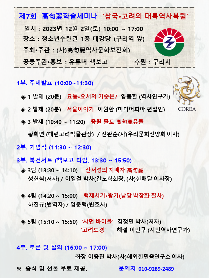 12월 2일(토) 제7회 고구려학술세미나 열린다.